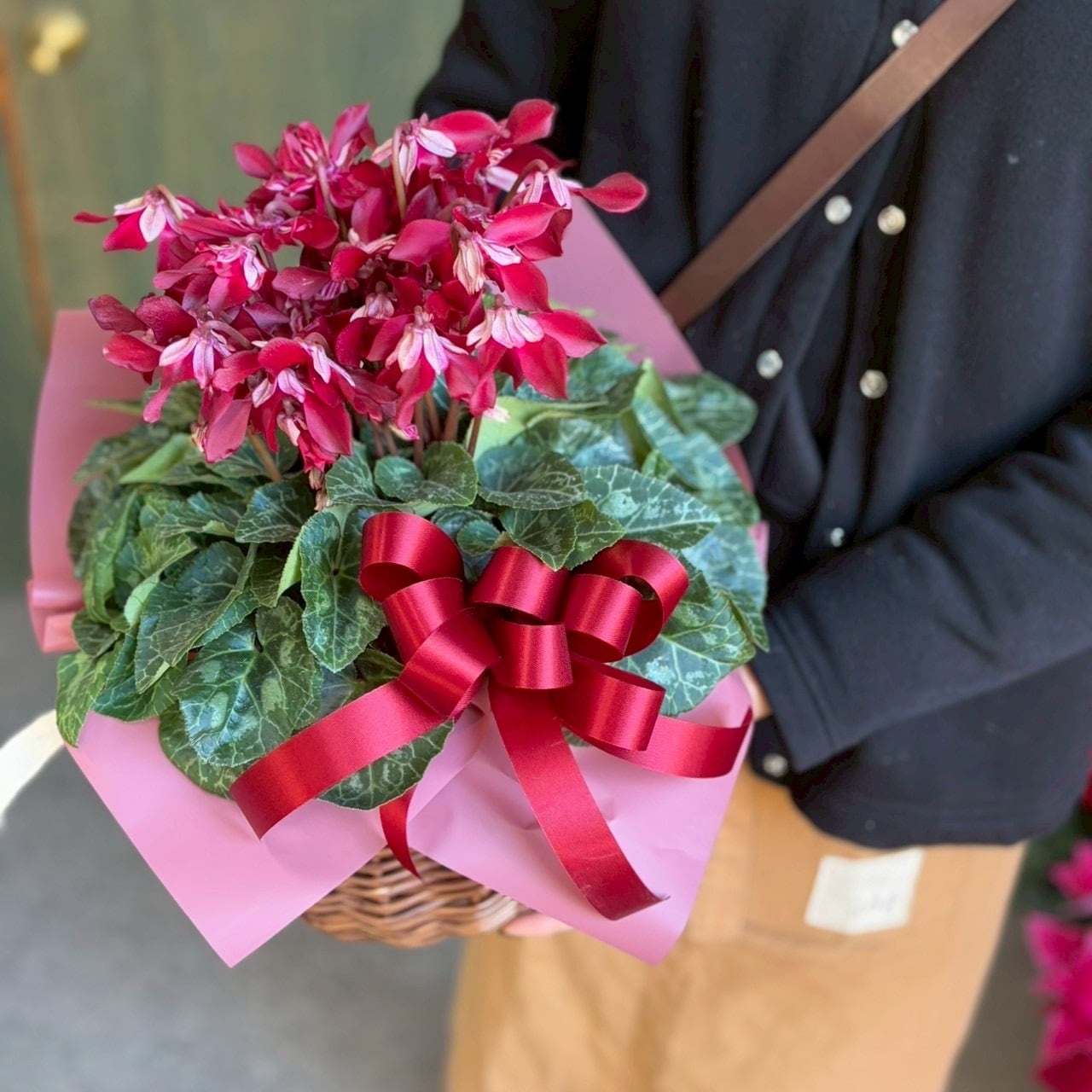 鮮やかな赤色が特徴のシクラメンは、特別な日のプレゼントにぴったりです。大切な人への思いやりを込めて、華やかなクリスマスを演出しましょう!ギフト用鉢カーバー付き。